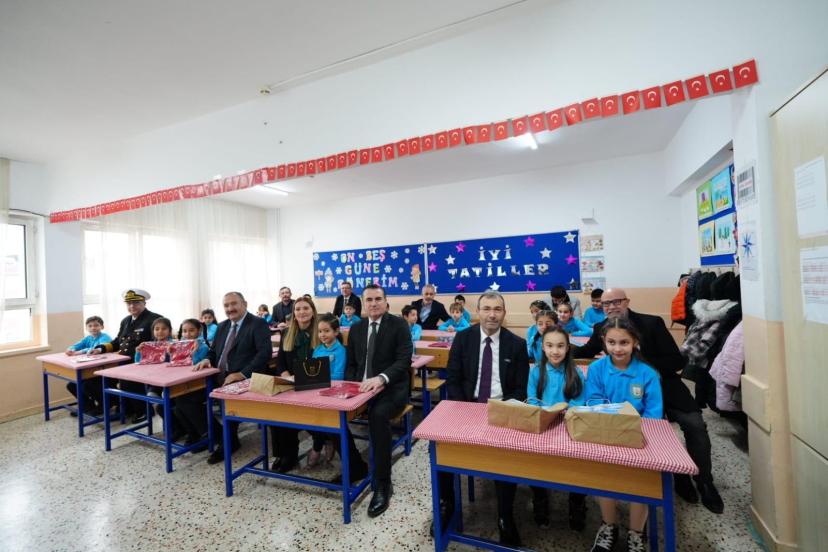 Pendik’te okul öncesi, ilkokul, ortaokul ve lisede okuyan yaklaşık 140 bin öğrenci birinci dönem karnelerini aldı. Belediye Başkanı Ahmet Cin de öğrencilerin karne sevincine Yıldırım Beyazıt İlkokulu’nda ortak oldu. Kaymakam Mehmet Yıldız’la birlikte Kaynarca’da bulunan okuldaki karne törenine katılan Bakan Ahmet Cin, öğretmenler ve öğrencileri tebrik etti. Sınıfları gezerek karneleri öğrencilere takdim eden veren Başkan Ahmet Cin, onlarla sohbet ederek içinde okuma kitabı, yapboz ile tiyatro bileti bulunan hediye çantası verdi. Başkan Ahmet Cin: “Öğretmenleri emeklerinden, öğrencileri ise başarılarından dolayı tebrik ediyorum” diyerek öğrencilere tatilde mutlaka kitap okumaları tavsiyesinde bulundu.