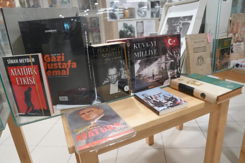 Nutuk’un Osmanlıca baskısı, Atatürk’ün 1924 yılı gezilerini anlatan Osmanlıca ilk baskı kitap ve tercüme edilmiş son baskısı da sergide yer aldı. Ayrıca Atatürk kapaklı illüstrasyon dergileri, yaklaşık 100 dergi ve 100 kitap ziyaretçilerin ilgisine sunuldu. Fransız fotoğrafçı Jean Weinberg’in nadir bulunan “Gazi’nin Eseri” adlı kitabı da öne çıkan eserler arasında yer aldı.