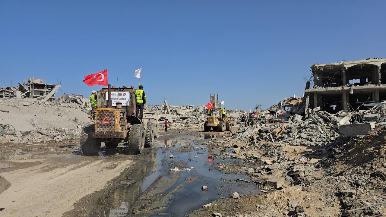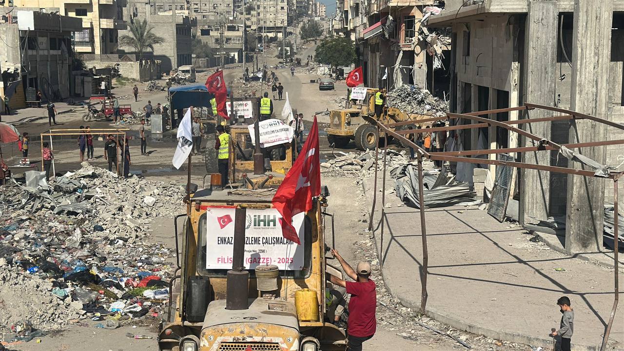 7 Ekim 2023’ten bu yana süren saldırılarda, İsrail’in uyguladığı sistematik şiddet sonucu 70 binden fazla sivil hayatını kaybetti, 130 binden fazla kişi yaralandı. Rjimin sürdürdüğü insanlık dışı abluka sebebiyle 460’tan fazla kişi açlıktan yaşamını yitirdi. Gazze Şeridi’nde saldırılar nedeniyle 454 binden fazla konut tamamen yıkıldı; okullar, hastaneler, altyapı tesisleri ve kamu binaları kullanılamaz hale geldi. İHH, özellikle Gazze’nin kuzeyinde büyük yıkıma uğrayan bölgelerde ağır iş makineleriyle enkaz kaldırma faaliyetleri yürütüyor. Bu çalışmalarla, hem halkın ulaşımını kolaylaştırmak hem de yardım malzemelerinin dağıtımını hızlandırmayı hedefliyor. Altyapının tamamen çökmesi nedeniyle içme suyu kaynaklarının büyük bölümü kullanılamaz hâle gelirken, vakıf günlük olarak binlerce kişiye nitelikli içme suyu ulaştırıyor.