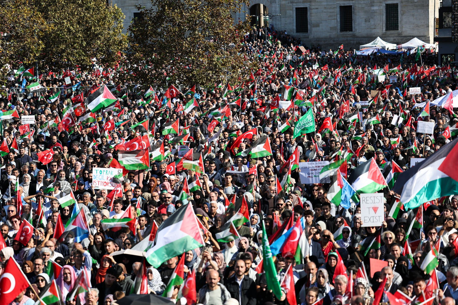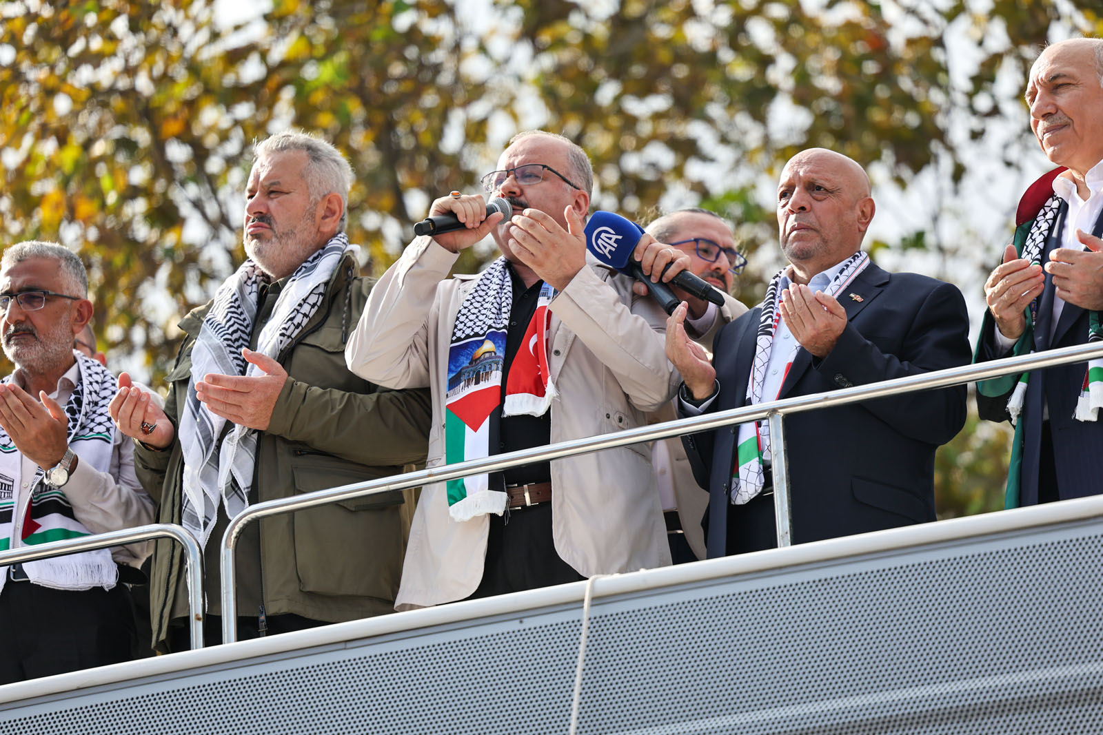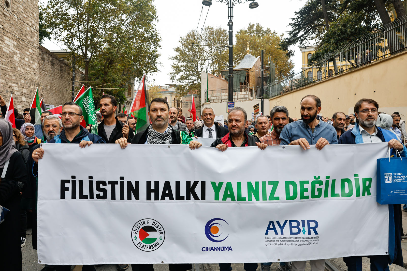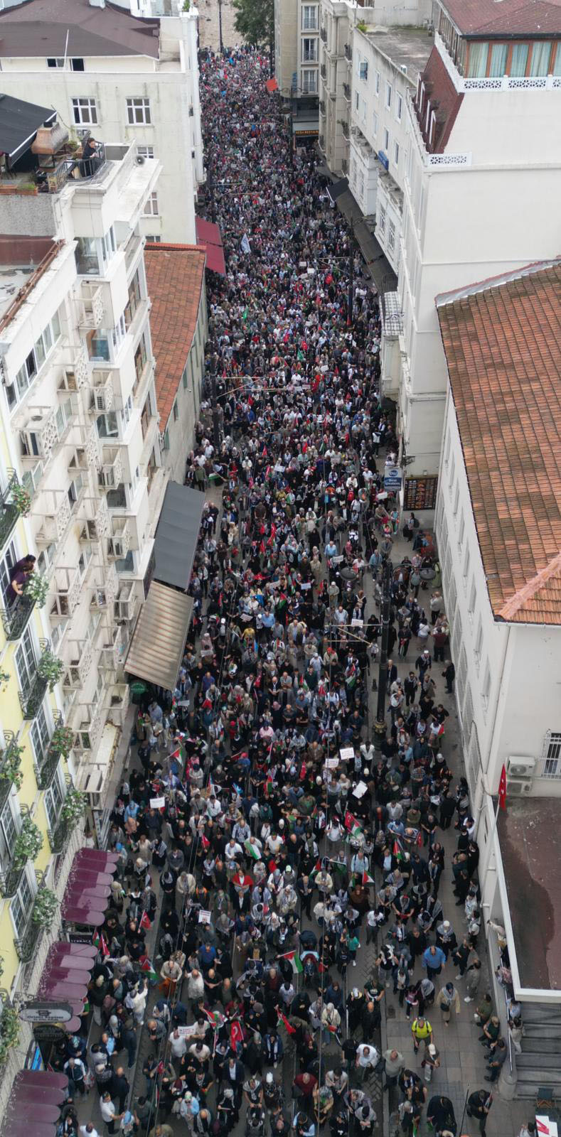 Yüz binlerce kişi öğle namazının ardından Ayasofya Meydanı'ndan Eminönü Meydanı'na yürüdü. Ellerinde Türk ve Filistin bayrakları taşıyan katılımcılar, "Katil İsrail Filistin'den Defol", "Katil İsrail İşbirlikçi ABD", "Nehirden Denize Özgür Filistin" sloganları attı, tekbirler getirdi. Tüm kortejler Eminönü Meydanı'na ulaştığında kalabalık yüz binlerce kişiye ulaştı. Eminönü Meydanı'nda da onlarca tekne Türk ve Filistin bayraklarıyla eyleme destek verdi.