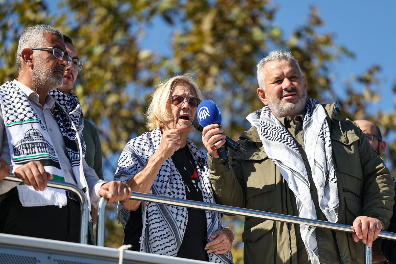 Eminönü Meydanı'ndaki program, Kur'an-ı Kerim tilaveti ile başladı. Tilavetin ardından konuşan Uluslararası Özgürlük Filosu Koalisyonu Üyesi Ann Wright, filonun İsrail’in Gazze’de uyguladığı ablukanın kırılması için yola çıktığını belirtti. Wright, “Son 17 yılda biz ablukayı kırmak için tam 34 defa denizlere açıldık. Şimdi 10’dan fazla gemi tekrar yola çıktı ve ablukayı kırmak için yeniden Gazze’ye gidiyorlar. Siz bu gemileri çok iyi biliyorsunuz. Bunlardan birisi Vicdan Gemisi. Biz ablukayı kırana kadar bu gemilerle ve daha fazlasıyla Gazze’ye gitmeye devam edeceğiz.” dedi.