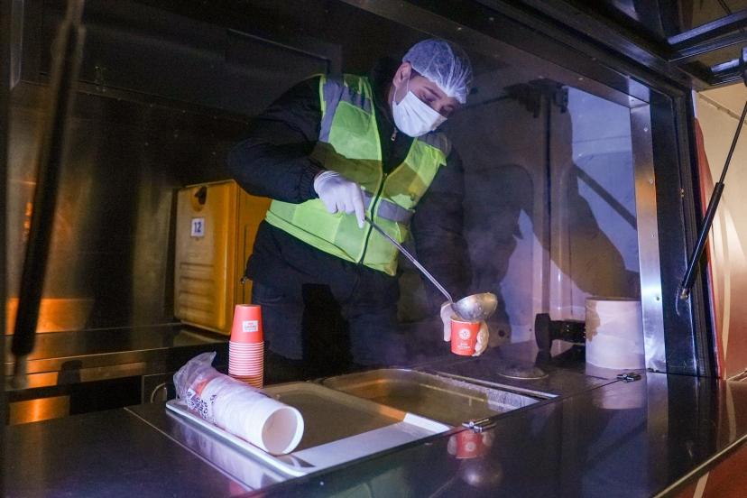 Maltepe Belediyesi, soğuk havanın etkili olduğu bu günlerde sabah erken saatlerde yola çıkan vatandaşlar için ilçenin farklı noktalarında sıcak çorba ikramı yapıyor.