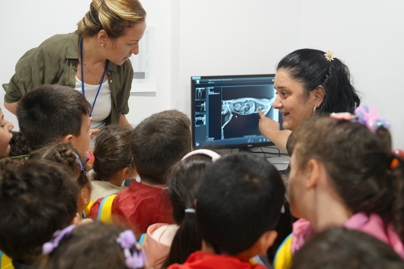 Çocuklara tedavi merkezinde bulunan ameliyathane, kedi pansiyonları, röntgen görüntüleme odası gibi alanlar gezdirilerek hayvanların sağlık hizmetleri konusunda bilgi verildi. Öğrenciler, veteriner hekimlerin gözetiminde hayvan sağlığının nasıl korunduğunu ve modern tesislerde yapılan çalışmaların önemini yakından öğrenme fırsatı buldu.