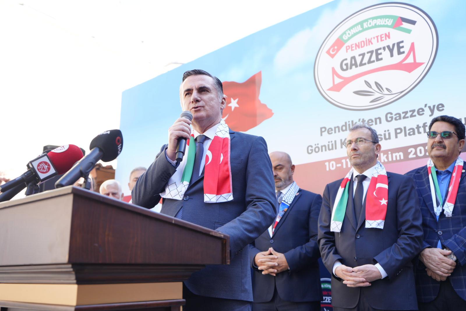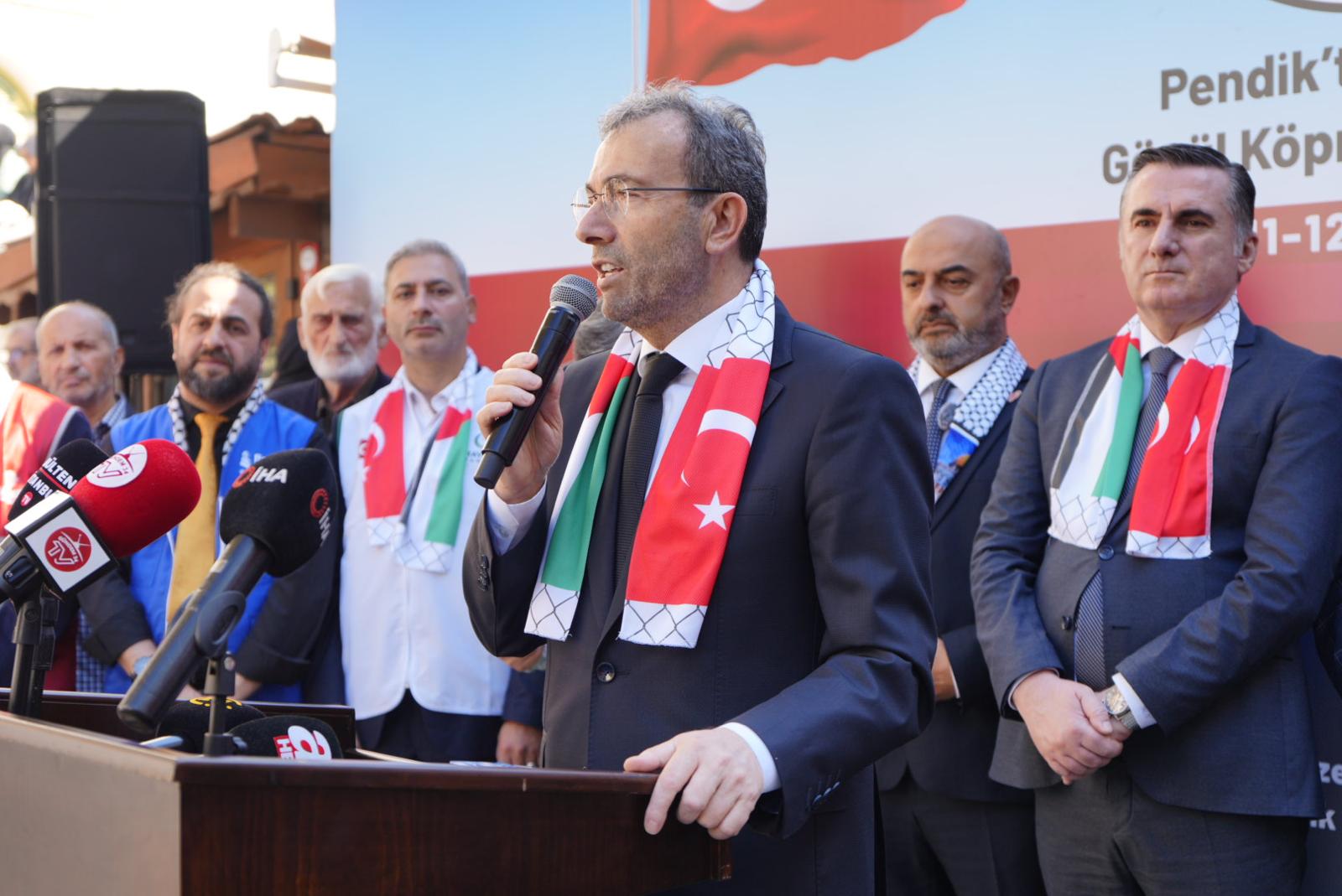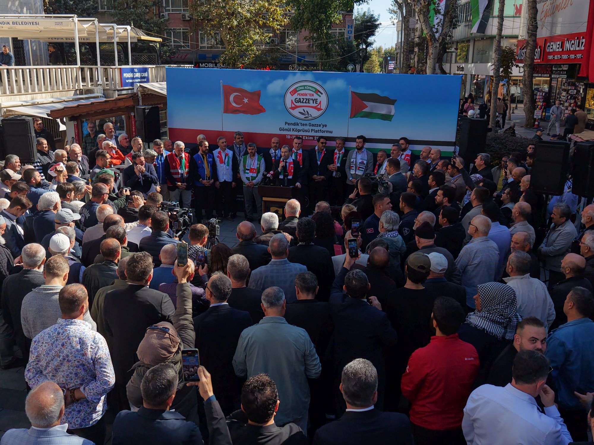Pendik’ten Gazze’ye Gönül Köprüsü Açılış Programı’na Pendik Belediye Başkanı Ahmet Cin, Pendik Kaymakamı Mehmet Yıldız, ilçe esnafı, sivil toplum kuruluşu temsilcileri ve çok sayıda vatandaş katıldı.