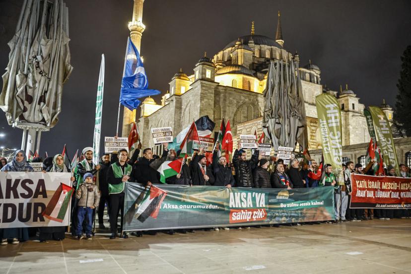 İsrail’in Mescid-i Aksa’yı Müslümanlara kapatması ve ibadeti engellemesi üzerine İHH İnsani Yardım Vakfı, Filistin’e Destek Platformu ve İslami Dayanışma Platformu öncülüğünde Fatih Camii avlusunda basın açıklaması yapıldı. Teravih namazının ardından gerçekleşen programa çok sayıda vatandaş katıldı.