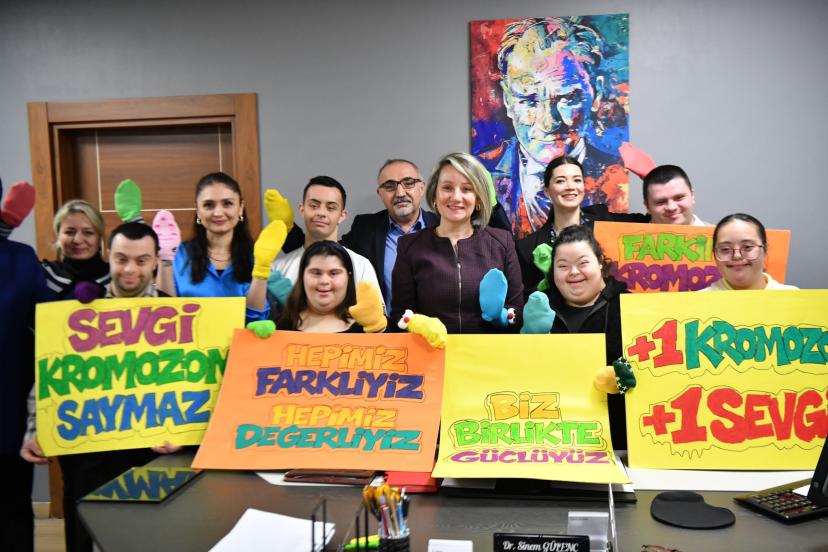 Ellerinde “Hepimiz farklıyız hepimiz değerliyiz”, “+1 kromozom, +1 sevgi” ve “Biz birlikte güçlüyüz” yazılı pankartlar taşıyan katılımcılar, sevgi ve dayanışma mesajı verdi. Belediye Başkan Yardımcısı Dr. Sinem Gülenç ve belediye personeli, farkındalık oluşturmak amacıyla rengarenk eldivenler giyerek özel bireyleri karşıladı. Program, günün anısına çekilen hatıra fotoğrafıyla sona erdi.
