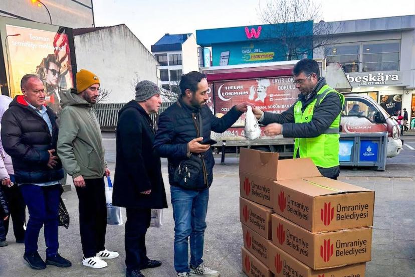 Necip Fazıl, Dudullu, Çakmak, Çarşı ve Ümraniye metro duraklarında her gün toplam 800 sandviç ve iftariyelik paket vatandaşlara ulaştırılıyor.