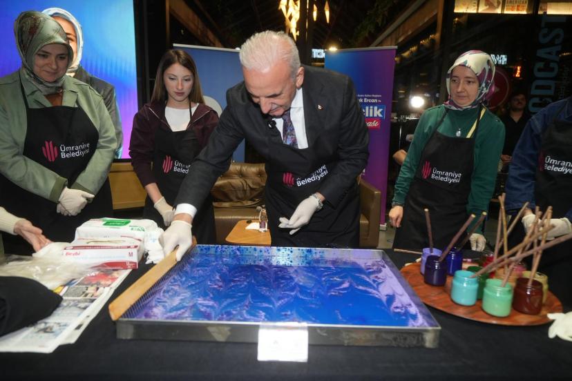 Programda müzik performansları, sürpriz etkinlikler ve ebru çalışması yer aldı. Ercan ve Belediye Başkanı İsmet Yıldırım gençlerle birlikte ebru yaparak keyifli anlar yaşadı.