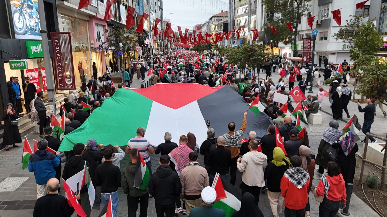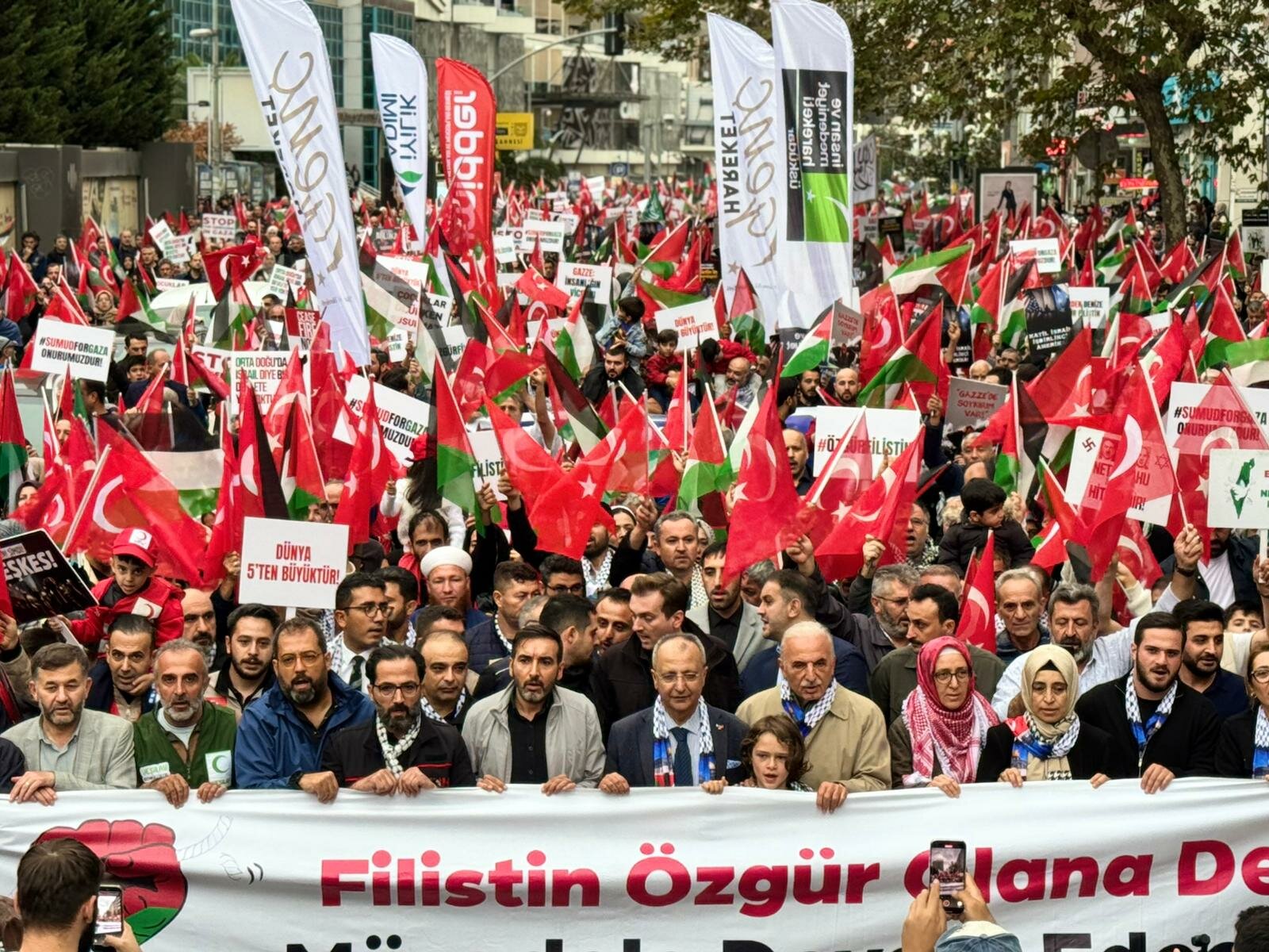 Ümraniye Belediyesi öncülüğünde gerçekleştirilen ve on binlerce vatandaşın katılım gösterdiği Gazze Yürüyüşü, Haldun Alagaş Spor Kompleksi önünden başlayarak 15 Temmuz Şehitler Meydanı’na kadar sürdü. Saat 16.30’da başlayan yürüyüşte, Türk ve Filistin bayraklarını taşıyan on binlerce kişi, hep bir ağızdan “Nehirden denize özgür Filistin”, “Dünya 5’ten büyüktür’’ “Gazze yalnız değildir” ve “Zulme sessiz kalma” sloganları eşliğinde yürüdü. Kalabalık, yürüyüş güzergâhı boyunca cadde ve sokakları tamamen doldururken yürüyüşün büyüklüğü Ümraniye tarihinde benzeri az görülen bir toplumsal birlikteliği ortaya koydu.